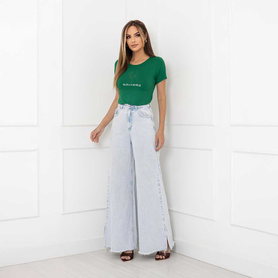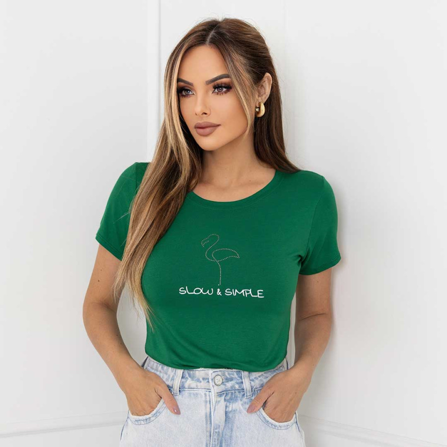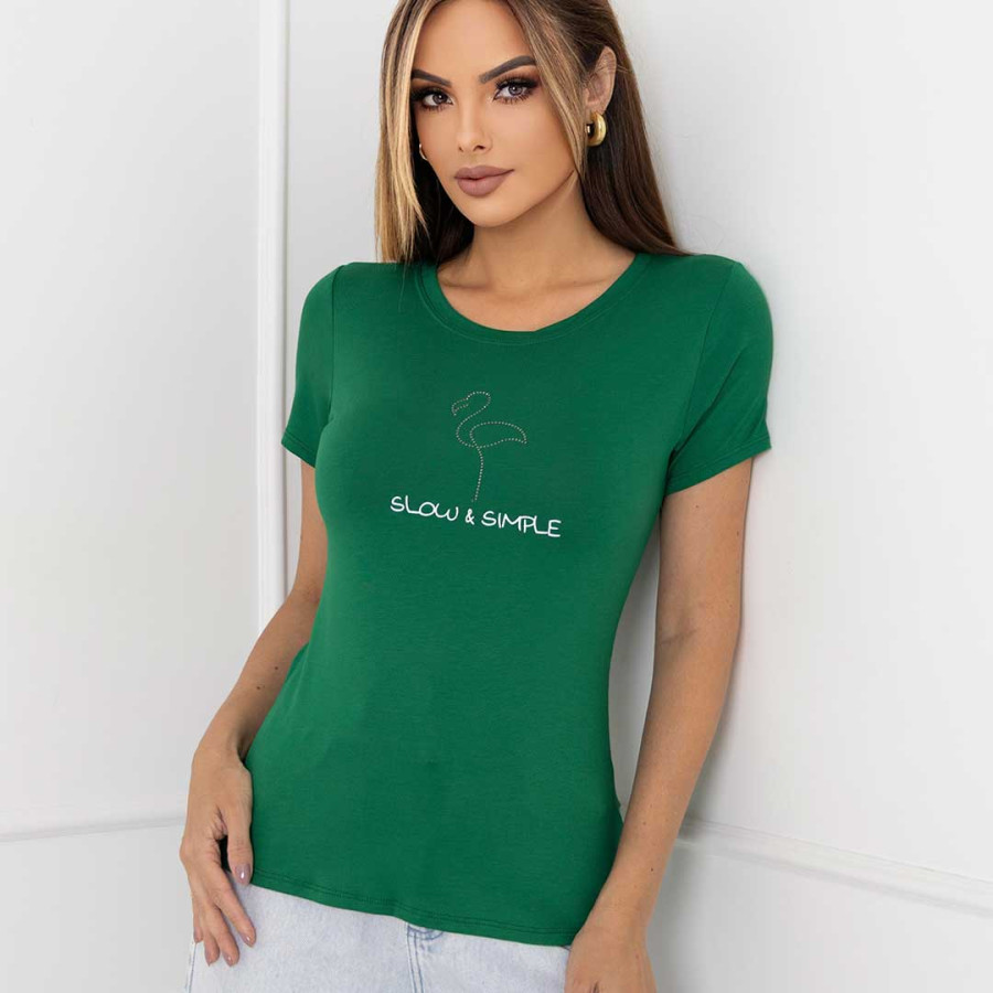 Blusa viscolycra com, com gola redonda e manga curta